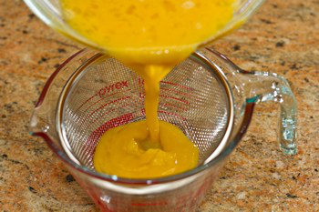 4. Strain the egg mixture through a sieve into a measuring cup with a handle (so it's easier to pour later).