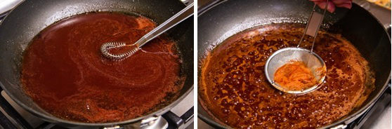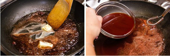 - In the same pan (without cleaning), add butter and sauce ingredients and mix well.