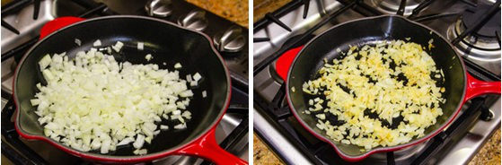 - Heat oil in a large pan over medium high heat and sauté the onion until translucent. Season with salt and pepper.
