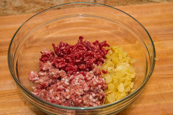 - ¾ lb (14 oz, 386 g) combination of ground beef and ground pork (Please read Notes)