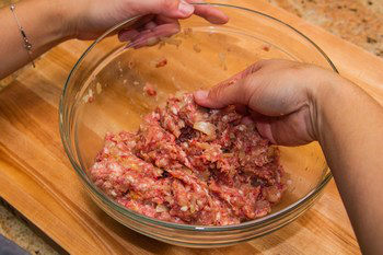 - Mix the meat well with your hands until the mixture gets sticky. If you want to keep your hands clean, use rubber gloves or use plastic bags.
