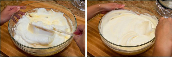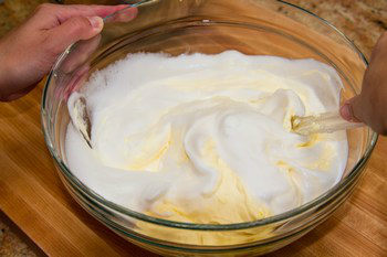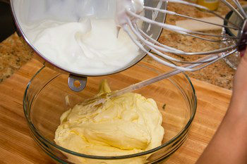 - Then add the rest of the meringue all at once and fold it in (not mix this time).