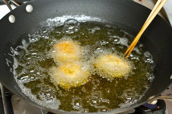 - In a wok, heat oil over medium high heat. Deep fry Korokke until they are golden brown (How To Deep Fry Food). Inside is already cooked, so all you need to do is to make it nice brown color.