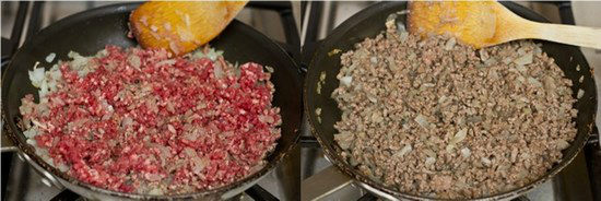 - Add the meat and break it up with a wooden spoon. When the meat is cooked, add salt and black pepper. Turn off the heat and let it cool.