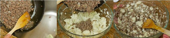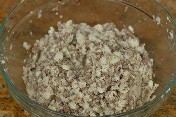 - Before adding the meat into the mashed potatoes in the bowl, get rid of the juice from the meat. If the mixture is too soft due to too much liquid, you can’t make a nice korokke shape and it won’t be the right texture when you bite into it.