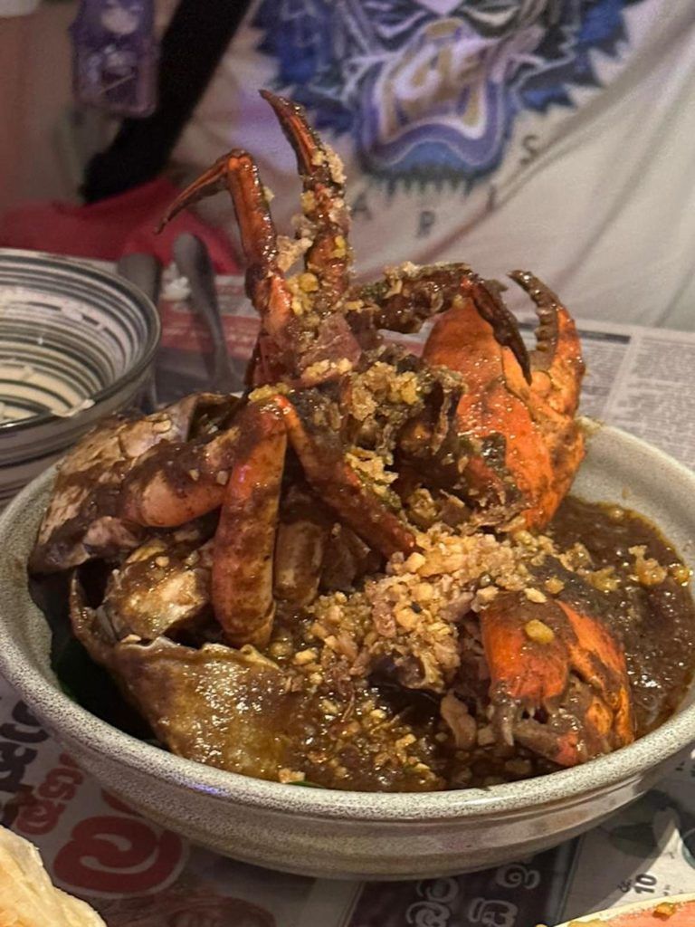 Затем наступило главное событие - Mud Crabs. Моя группа и я выбрали ароматы черного перца и чили-тамаринда для четырех человек. Черный перец был ароматом, с которым я был очень знаком и любил - что касается других вкусов в меню (чили-тамаринд, кокос и лайм, Джафна-краб Кари), я был не слишком знаком и попросил у персонала рекомендации. Поскольку я умел обращаться со специями, сотрудники сказали мне, что чили-тамаринд был популярным выбором. В итоге это оказался хороший выбор, поскольку из этих двух мне больше понравился «Чили-тамаринд», чем мой знакомый фаворит.