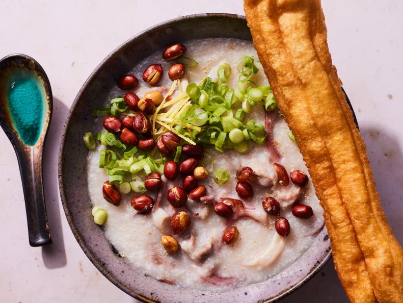 Отвар (джук на кантонском диалекте) — популярный завтрак во многих частях Азии, и его можно подавать относительно просто или включать в себя различные начинки и добавки, такие как морепродукты, соленая свинина и иногда столетнее яйцо. Это рецепт отварного отвара из свинины и морепродуктов в кантонском стиле с полосками соленой свинины, кальмаров и рыбных котлет. Это похоже на то, что предлагают многие рестораны в Китае, Гонконге и других странах; В английском меню вы можете увидеть его как «отвар сампан», поскольку сампан представляет собой небольшую деревянную лодку. Гарнир из жареного арахиса с красной кожурой типичен для тан джай джук и многих других джук; мы настоятельно рекомендуем вам приготовить их, поскольку они придают этой согревающей душу каше глубокий ореховый и соленый вкус, и их можно приготовить за 5 дней вперед. (Не делайте их заранее, так как это соблазнительная закуска!) Мы также рекомендуем подавать это блюдо с ютяо, типичным дополнением к завтраку, которое иногда называют китайскими пончиками или китайскими круллерами. Вы можете найти замороженный ютяо на некоторых азиатских продовольственных рынках.
