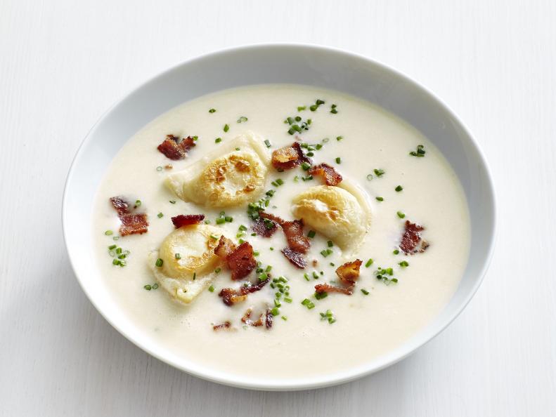 Держите упаковку купленных в магазине вареников в морозильной камере, чтобы в любой момент вы были готовы приготовить семейный ужин. На этом будничном ужине картофельные клецки готовятся на сковороде, а затем добавляются в картофельный суп вместе с хрустящим беконом.