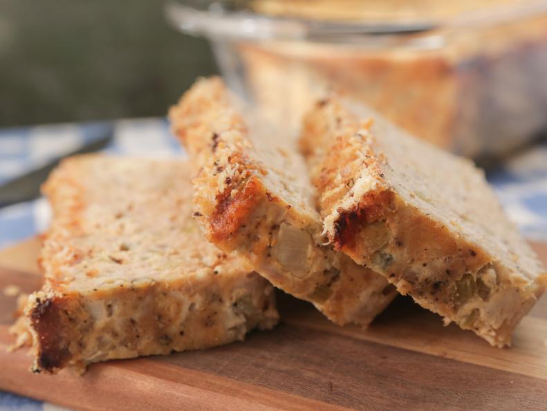 - Украсьте ломтики мясного рулета поджаренной панко и нарезанными листьями сельдерея.