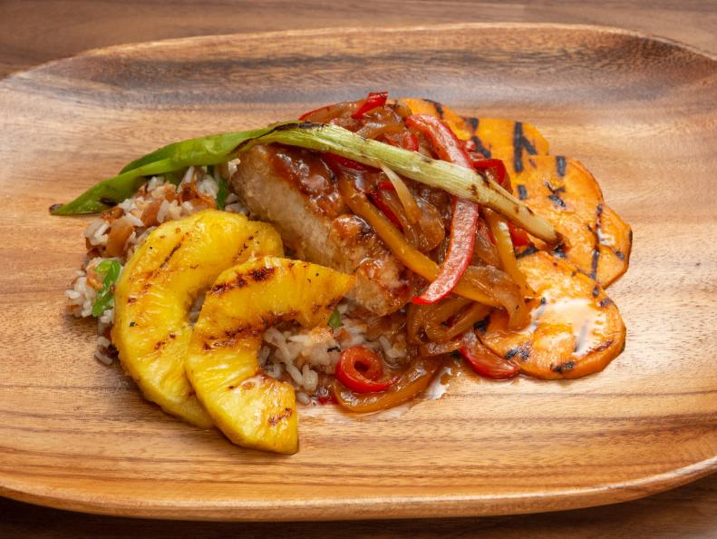 Махи-махи с ананасовой глазурью, перцем и кокосовым рисом