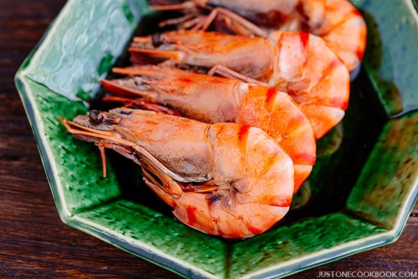 Simmered shrimp cooked in dashi soy sauce and soaked overnight, this beautiful dish adds a bright color and delicious flavor to your Osechi Ryori.