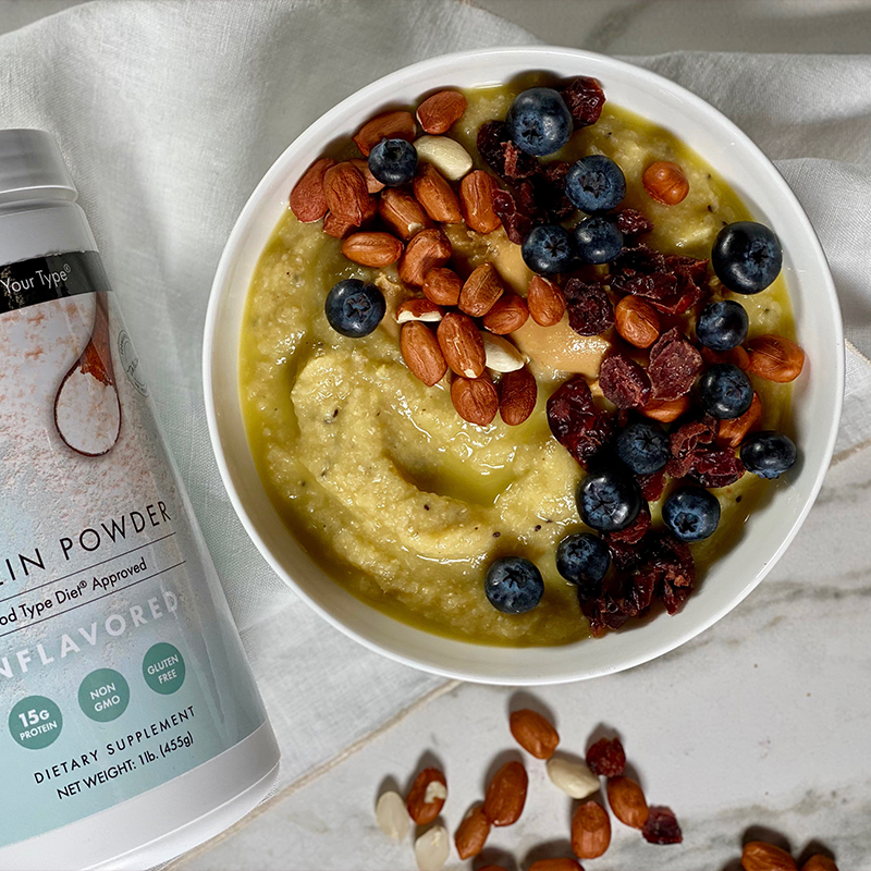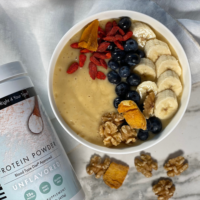 newly reformulated Uniblend Protein Powder- Unflavored — and right 4 all blood types. Pick your toppings for a super beneficial bowl of goodness.The Blood Type Diet made easy