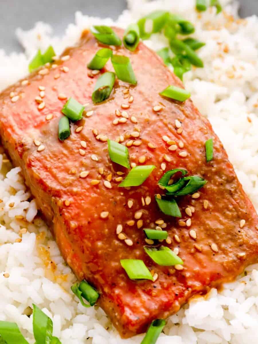 Лосось мисо в глазури — это вкусное, питательное и популярное блюдо, которое легко и быстро приготовить, что делает его идеальным выбором для ужина в будние дни на подушке из рассыпчатого риса.