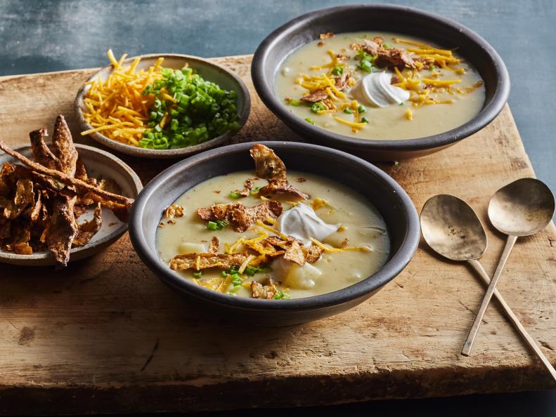 Овощной бульон в коробках бывает самых разных цветов и вкусов; если вы хотите более белый картофельный суп, ищите один из прозрачных, легких бульонов, а не оранжевые версии с большим содержанием моркови. Пюрирование супа прямо в кастрюле погружным блендером сохраняет его деревенский вид; сделайте это в обычном блендере, и он станет более шелковистым и немного более элегантным. Обычный блендер также может сделать суп немного пастообразным, потому что он очень тщательно разбивает картофельный крахмал.