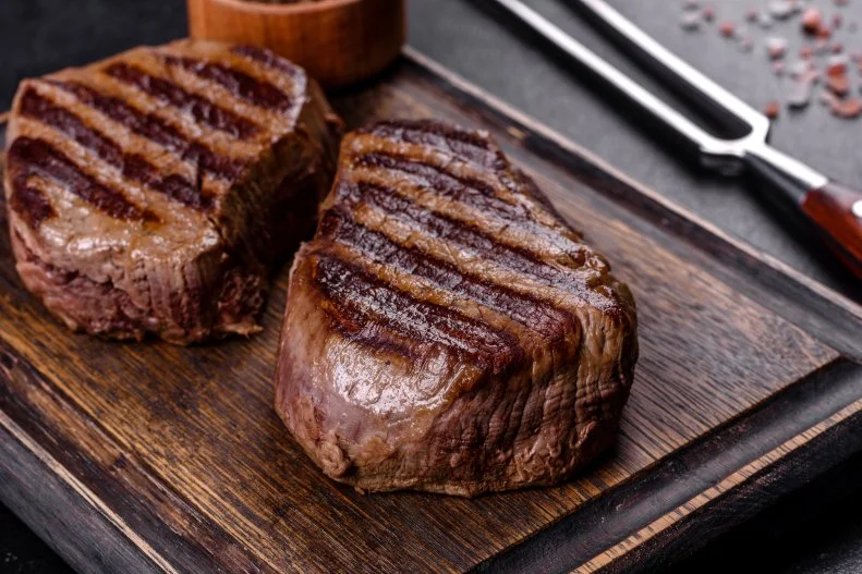 В следующий раз : ищите стейки с хорошей мраморностью, чтобы получить нежные результаты. Если ваш мясник этого не сделал, обрежьте жир по краям стейка примерно до 1/4 дюйма; оставив немного, вы улучшите качество приготовления. Исключением из этого правила «жир — это хорошо» является филе-миньон: этот чрезвычайно постный отруб является одним из самых нежных и почти не имеет видимого жира; это тот отруб, который нужно покупать, если вы хотите получить минимум жира, но при этом сочный стейк.