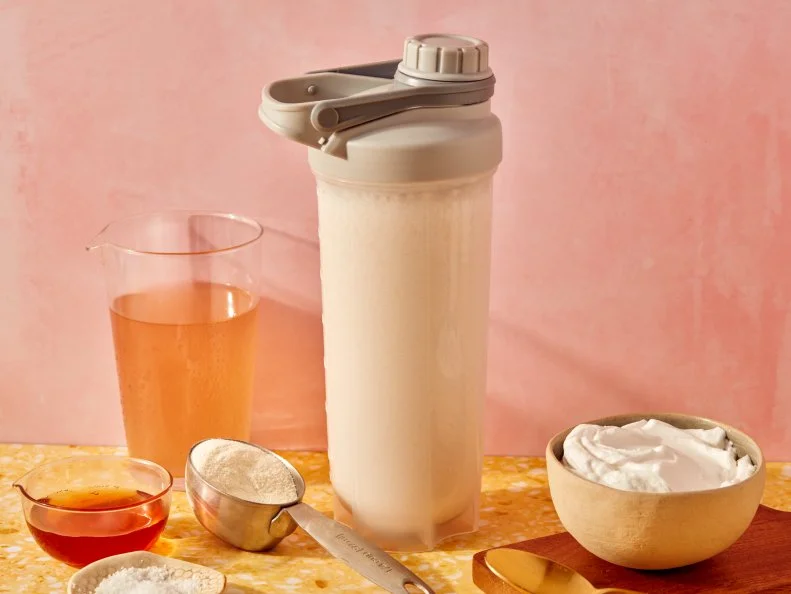 шейкер с насадкой-блендером- Добавьте кокосовое молоко, ананасовую кокосовую воду, кокосовый йогурт, протеиновый порошок, подсластитель и соль в шейкер с шаром для блендера и взболтайте до получения однородной массы, около 1 минуты. Попробуйте и при желании добавьте больше подсластителя.