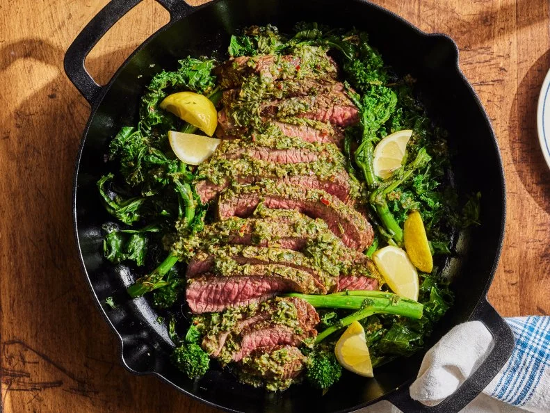 В этом рецепте используется несколько убойных кухонных трюков, чтобы усилить вкус, не заставляя вас работать. Обратный маринад приправляет ваш стейк после того, как он обжарится, чтобы смесь чеснока и трав могла глубоко проникнуть. Подавайте стейк на сковороде с хрустящей нежной капустой и брокколи, приправленной небольшим количеством лимона.