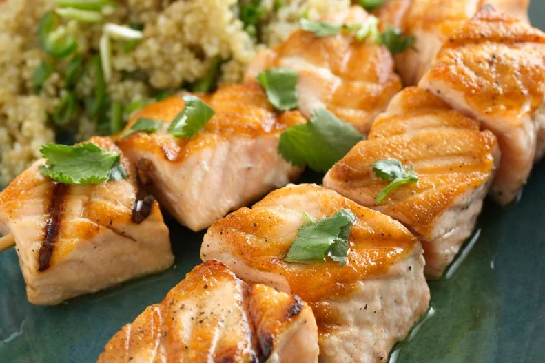 Кебаб из лосося с киноа и салатом из грейпфрута